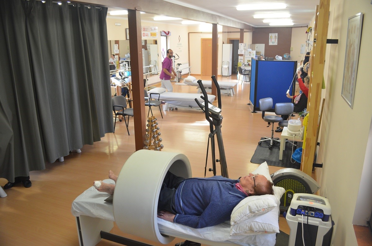 Fisioterapia: Todos los centros FISIOMER son vanguardistas respecto a los tratamientos y tecnologías aplicadas, así los usuarios reciben magnetoterapia, mecanoterapia (máquinas de musculación adaptadas a silla de ruedas, bicicletas de movilización pasiva de miembros inferiores, etc.), electroterapia (infrarrojos, ultrasonidos, electroestimulación y corrientes interferenciales), aparatos de bipedestación (paralelas) reeducación de la marcha, presoterapia, termoterapia y terapia combinada con efecto de succión.